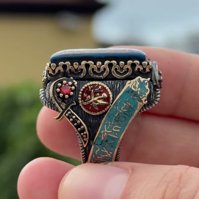 قبل 5 دقائق خاتم مصنوع يدويًا من الفضة الإسترلينية عيار 925 على شكل تمثال مسجد فيروزي - 06