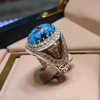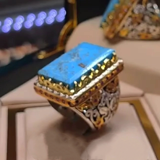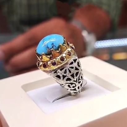 قبل 3 دقائقخاتم مصنوع يدويًا من الفضة الإسترلينية عيار 925 على شكل تمثال مسجد فيروزي - 01