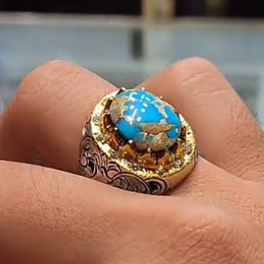 قبل دقيقه واحدةخاتم مصنوع يدويًا من الفضة الإسترلينية عيار 925 على شكل تمثال مسجد فيروزي - 02