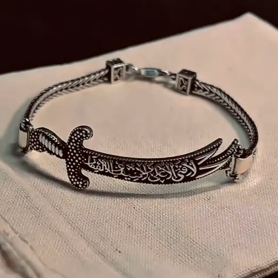 قبل 2 دقائق سوار رجالي من تصميم ذو الفقار، فضة إسترليني 925، هدية مجوهرات إسلامية - سوار من الفضة عيار 925 مصنوع يدويًا