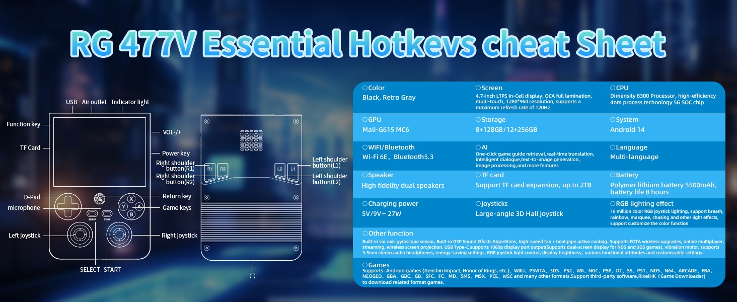 قبل 2 دقائق جهاز ألعاب محمول كلاسيكي من أنبيرنيك RG477V - الوحدة الرئيسية الرمادية + بطاقة ذاكرة سعة 128 جيجابايت